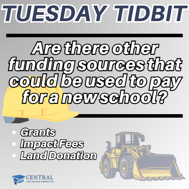 Central 301 regularly applies for and receives funding – such as grants – from multiple outside sources. These funds are used to meet a variety of District needs. However, there is no current funding available to us from private, corporate, state or federal grant sources to build a new school building. At this time, school districts must provide their own funding for such projects.