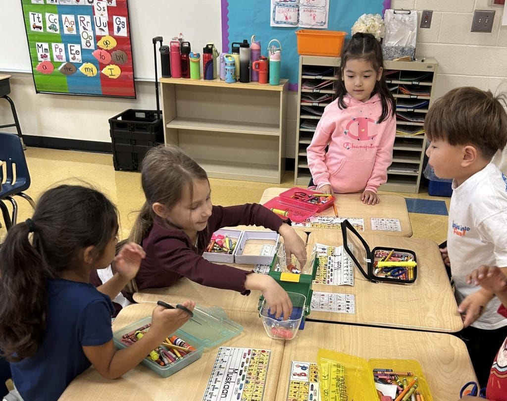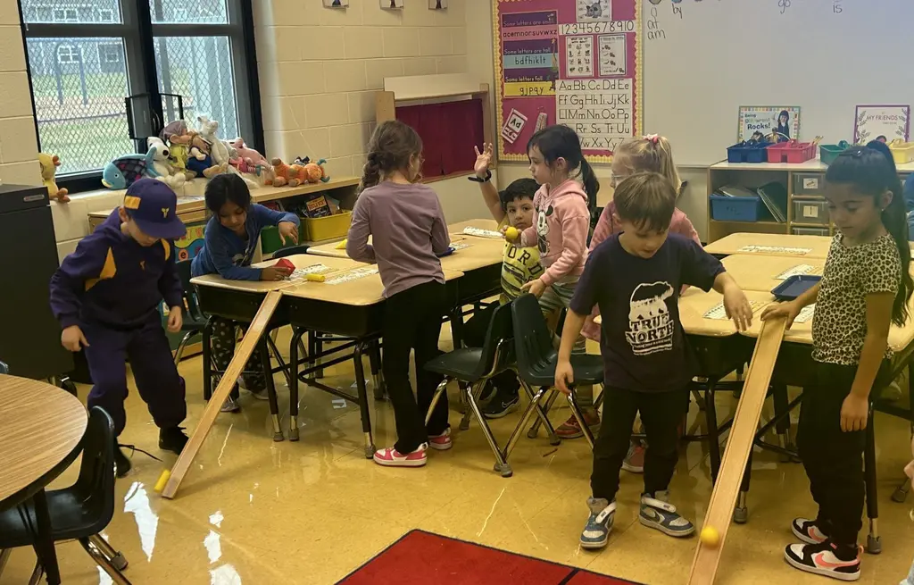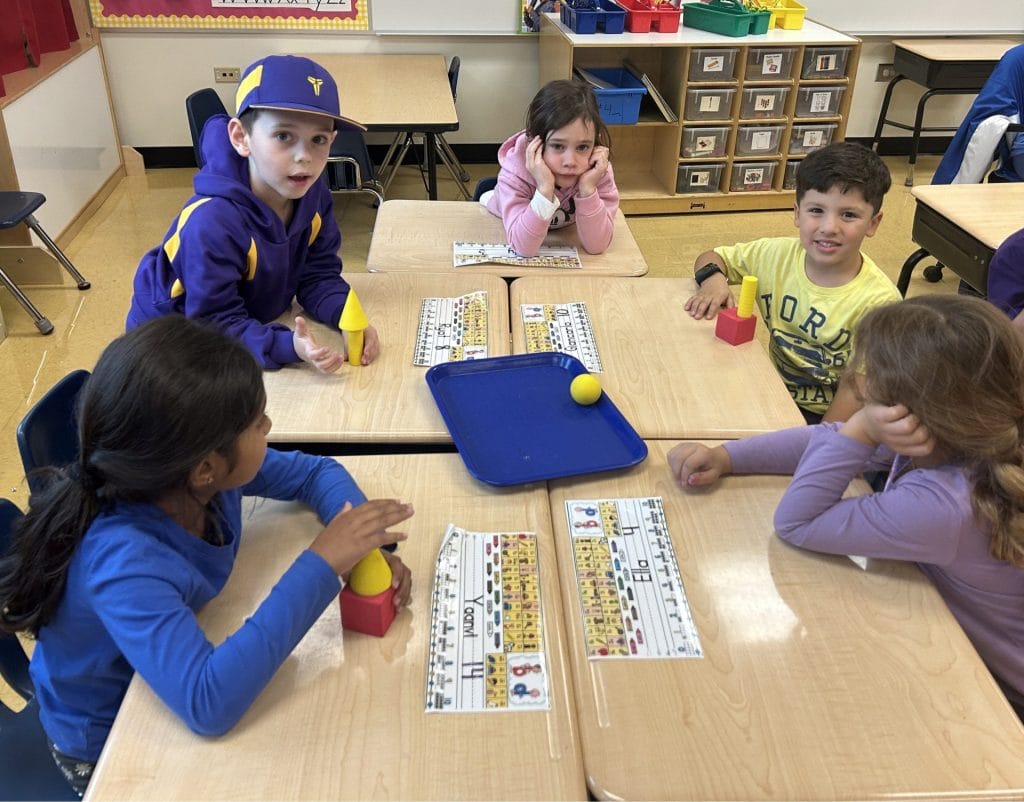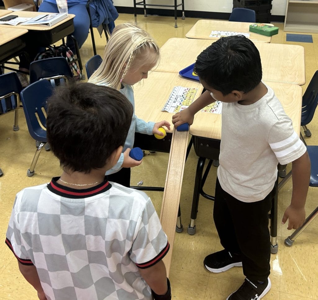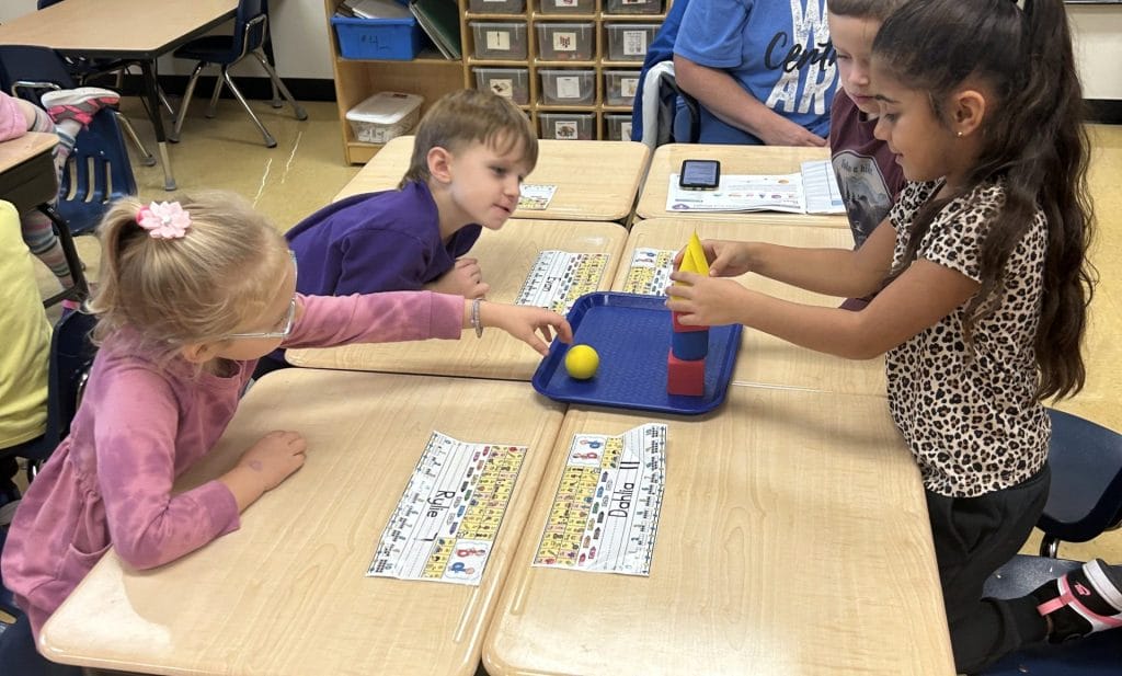 Kindergartners have fun with math learning about which items are heavier and which are lighter. They identified which 3D shapes roll, stack, and/or slide!