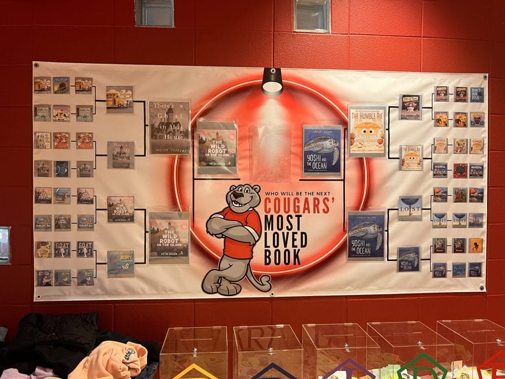 The school-wide initiative began with 32 books, read and shared across classrooms and the library over the course of several months. Students participated in regular voting rounds, narrowing the field as the bracket progressed and excitement built throughout the building.