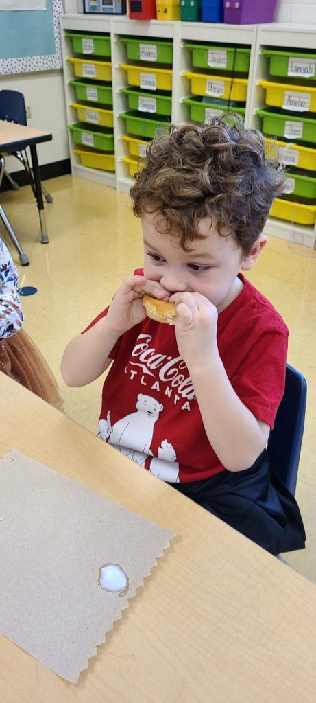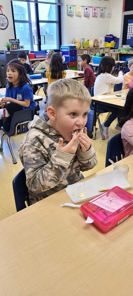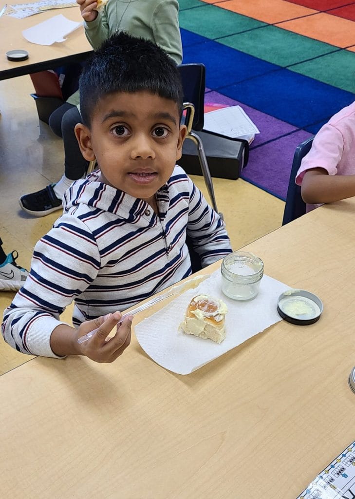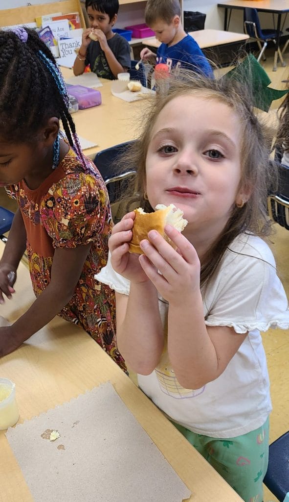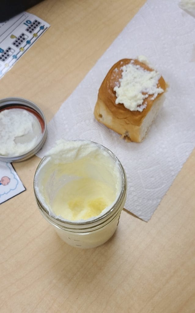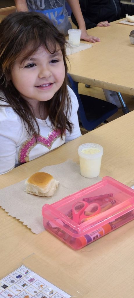 Kindergarten started our day off with fun making butter! They discovered how easy it is to run to the store for a tub of butter! It’s a lot of work to make it by yourself! The butter sure was yummy!