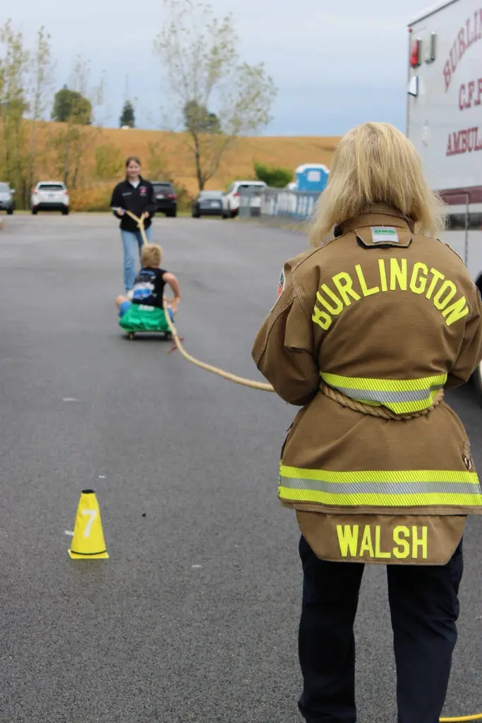 During the week of October 6th, the Burlington Fire Department is partnering with HBT to host various fire prevention and fire safety discussions. Students got to see a fire truck, visit a smoke house, or have a fireman/firewoman visit their classroom. In addition, some of the older students participated in obstacle courses involving fire equiptment. Check out some of the pictures to get a glimpse of the fun! Thank you Burlington Fire Department!