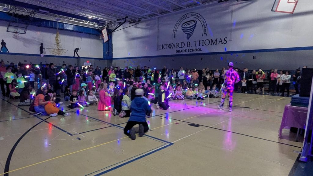 On Friday, February 6th, the HBT PTO put on their first ever Neon Night Dance Party. Students and parents had a blast dancing to good music and being entertained all night long. Check out some pictures below to get a glimpse inside.