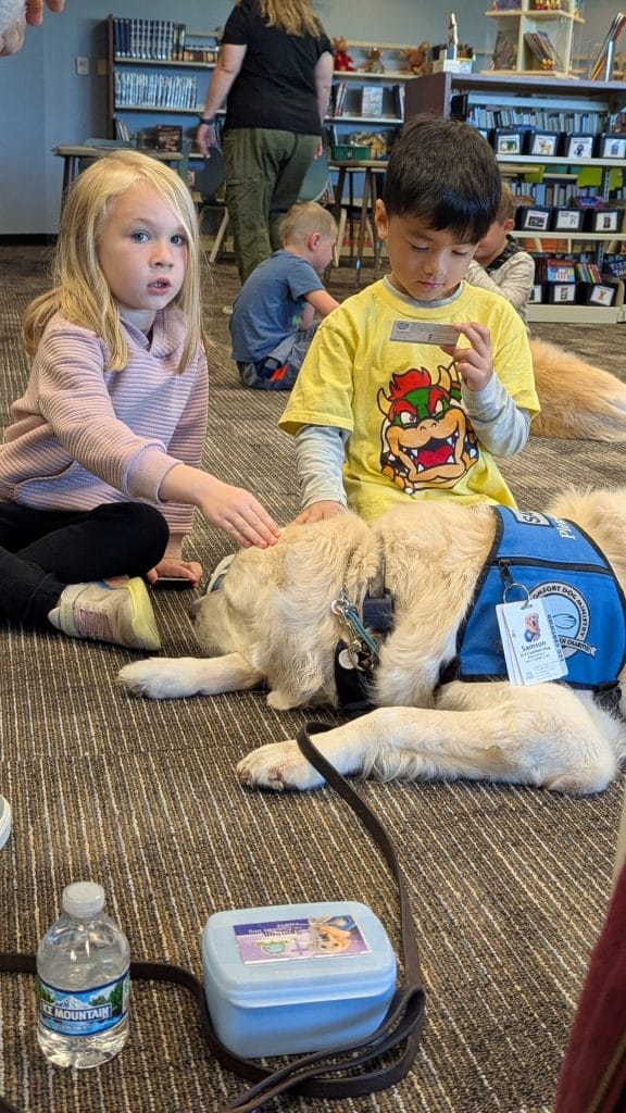 On the morning of October 20th, 2025, students at HBT were selected to read to the dogs because they have exhibited positive behaviors. Both Eunice and Sampson were happy to help reward these students! Here are a few pictures from this month’s dog reading reward!