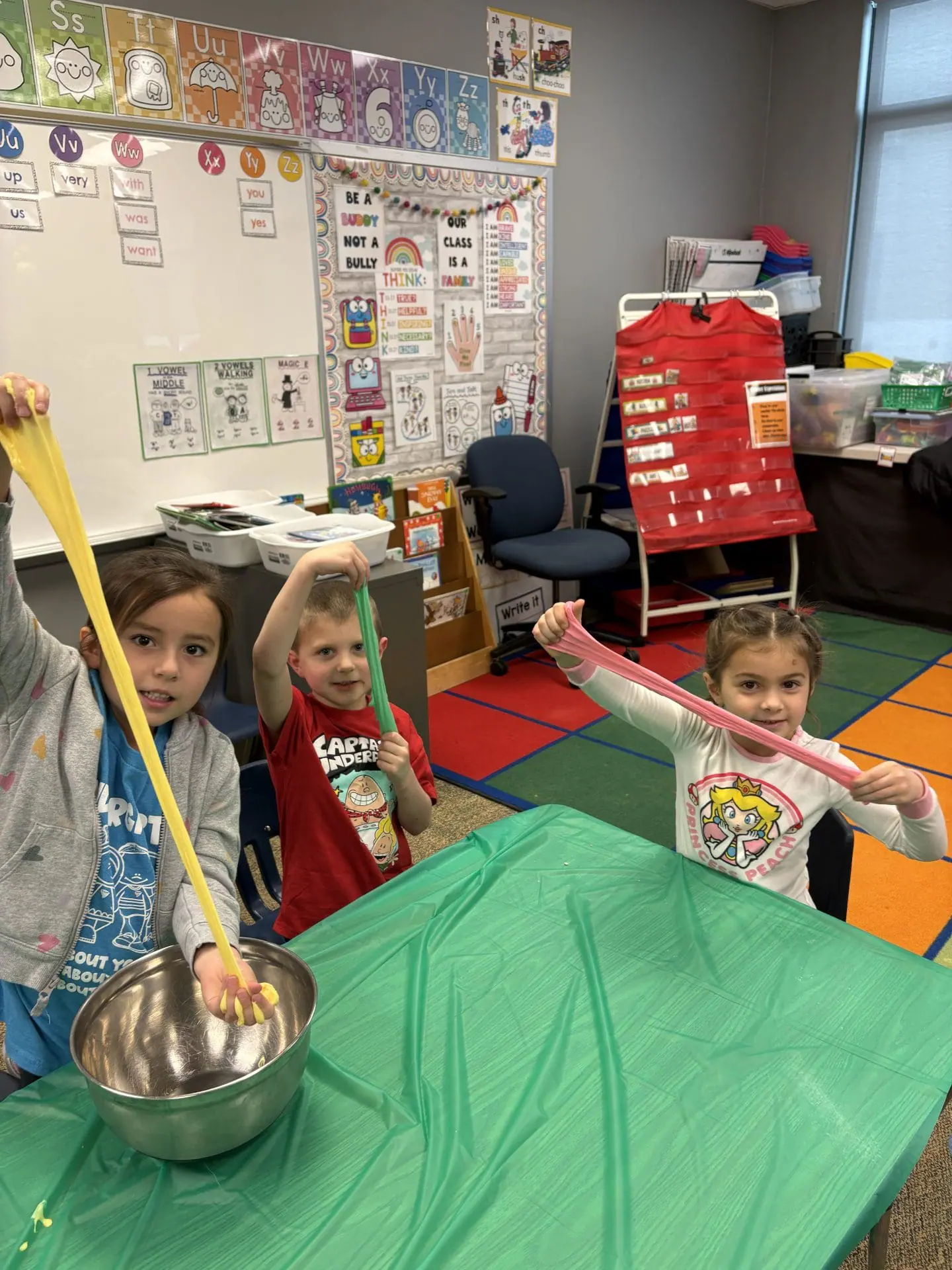 Mrs. DiPrizio’s Kindergarten classroom conducted a Science experiment today where they made slime. Check out the fun below!