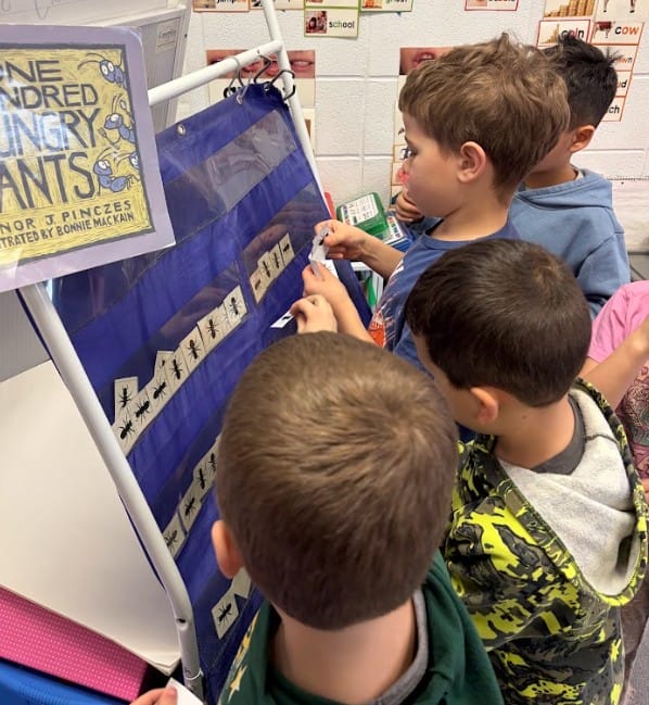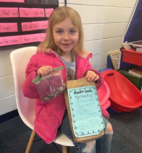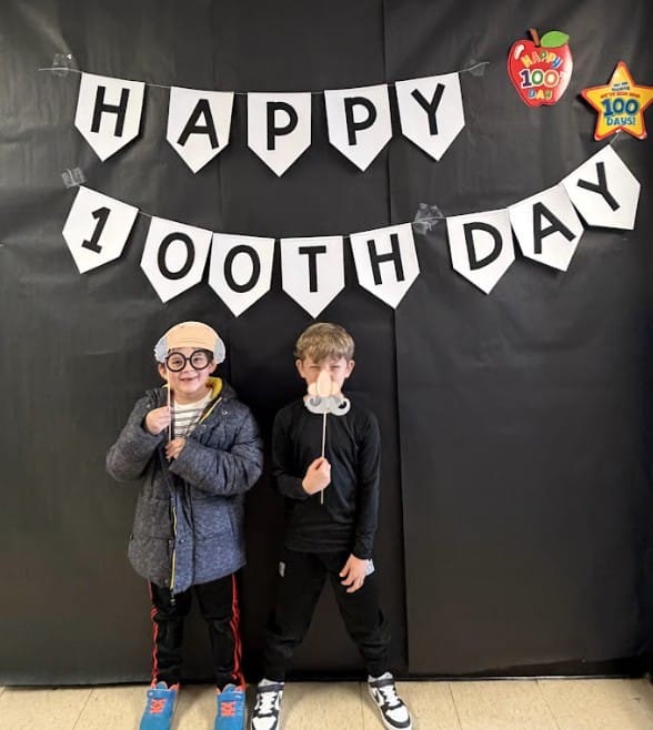 Mrs. Jennifer Weibler’s class marked the occasion with a series of interactive activities designed to reinforce counting, problem solving, and collaboration. Students explored mystery bags filled with 100 items, offering clues and making predictions before revealing what was inside. After reading One Hundred Hungry Ants, students searched the classroom to find all 100 ants hidden throughout the room, turning the lesson into an engaging adventure. The celebration wrapped up with a festive photo booth that captured the excitement of the day.