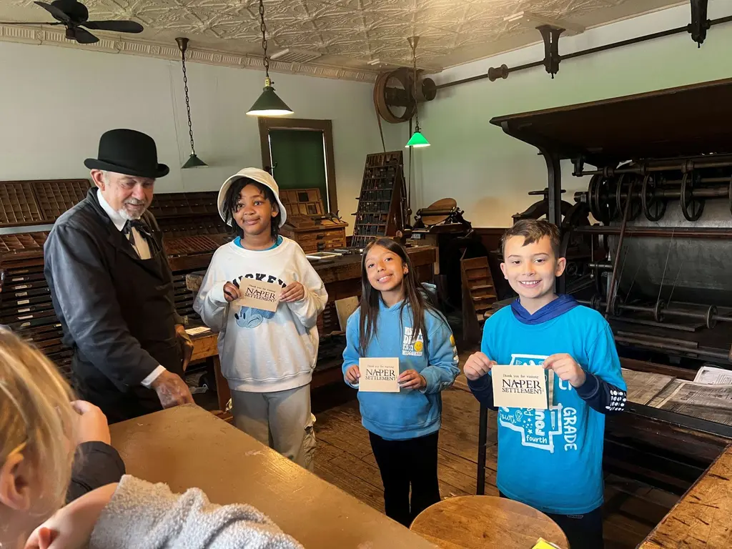 On May 1st, the HBT 4th graders took a trip to Naper Settlement in Naperville, IL. Naper Settlement is an outdoor history museum where visitors learn about the past and how it relates to the present. Take a look at the pictures below to get a glimpse inside the trip.