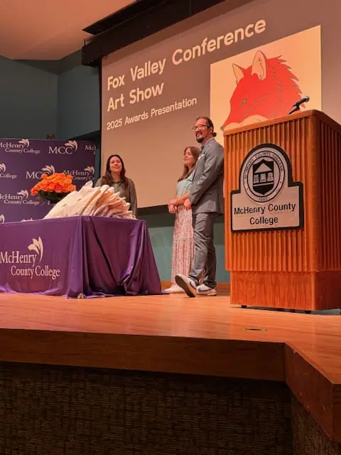 Central High School is extremely proud of the Student & Staff showing at the 2025 FVC Art Show. The show was held April 8th through the 20th at McHenry County College. On Thursday night last week, four students were given their awards for their pieces. Our CHS Fine Arts staff were present and ran the awards ceremony with Mr. Struyk serving as the night’s emcee of events.