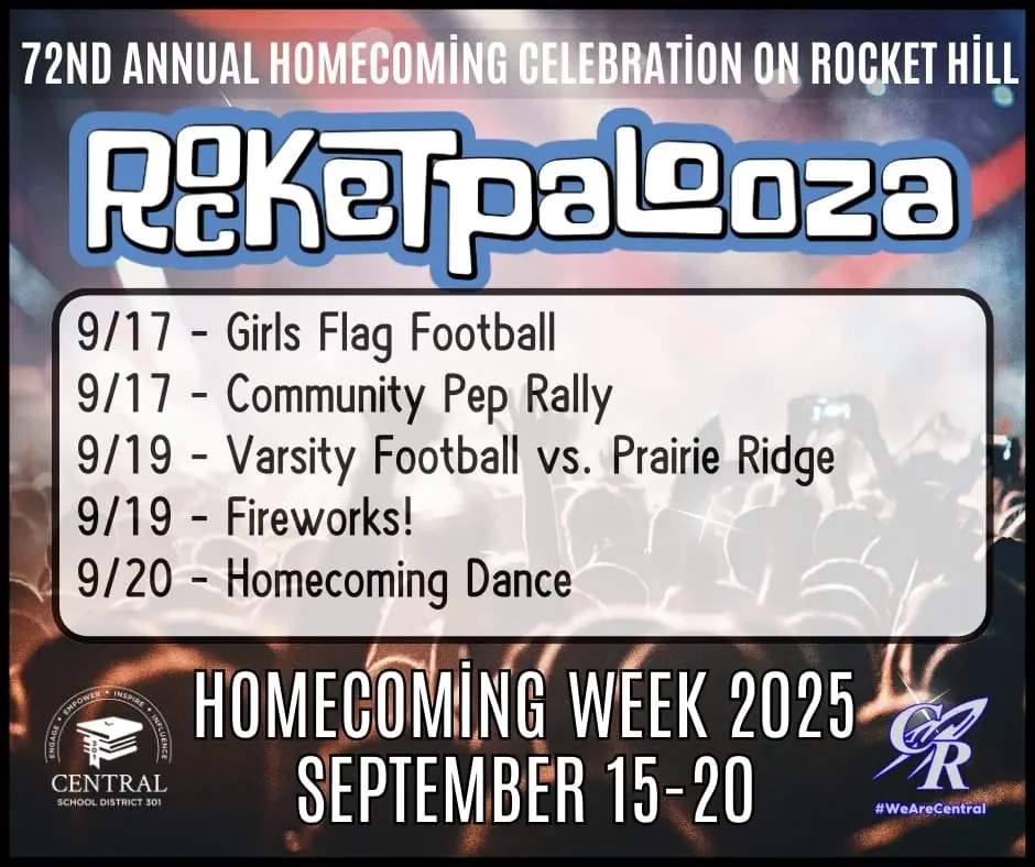 Homecoming is here, and Central High School is ready to celebrate Rocketpalooza with a full week of spirit, games, and community fun! Below is your one-stop guide to all events, themes, tickets, and more.