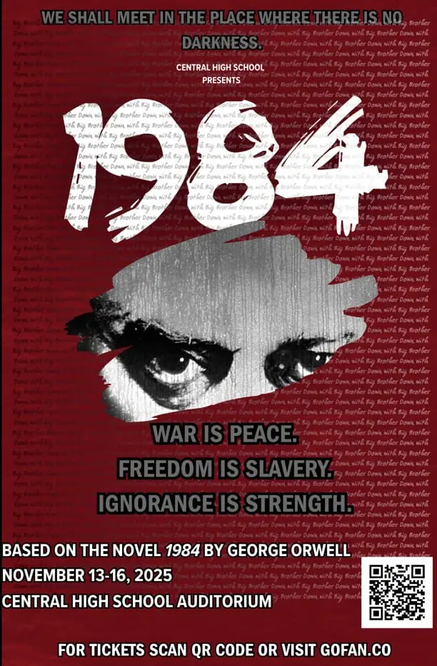 Prepare to enter the world of Oceania as Central High’s theatre department presents 1984 from November 13–16, with the final performance at 2:00 PM on November 16. The classic dystopian tale—adapted for the stage—explores themes of surveillance, control, and resistance that still resonate today.