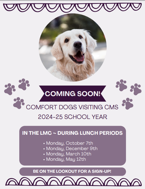 Four times a year, Central Middle School welcomes the beloved Comfort Dogs from the Kane County area. These specially trained dogs help people feel calmer and reduce stress. Students can sign up to spend time with the Comfort Dogs on the designated days.