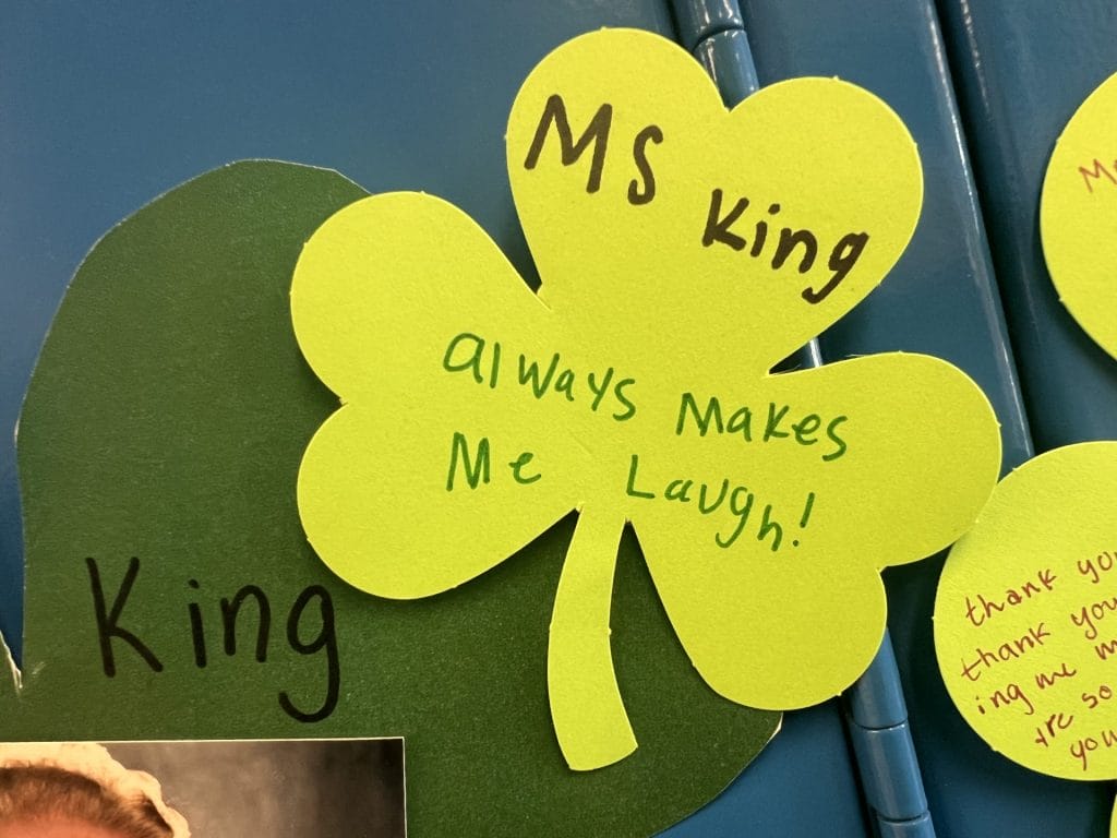 As part of the school’s March STAR service project, students are participating in an activity called “How Lucky Are We?” where they write messages of appreciation to CMS staff members. Each staff member’s photo has been placed on a shamrock, giving students the opportunity to share why they are thankful for the teachers and staff who support them each day.