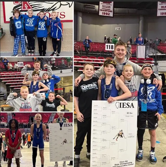 Congratulations to Prairie Knolls students Gideon Ayers, Damon Llanuza, Liam Morris, and Raylan LaSage as they qualified for the IESA State Wrestling Tournament held at Northern Illinois University. The boys wrestled well with Damon Llanuza placing 2nd and Gideon Ayers bringing home a state title! Congratulations and well done!